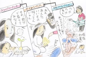 職員が子どもを抱き上げ、「可愛いねぇ~」とあやすと、とても嫌な顔をする。そんなとき、自身の大事にされなかった子ども時代を思い出して、自分の子どもにやきもちを焼くんででしょうね。子どもが自分に甘えて抱きついてくると、首ねっこをつかんではなす。泣いてしまう子どもに対して職員は、「あら痛かったね~。ママにギュ~としたかったんだよね~、つれないね~」と、冗談めかして場を和ませようとします。「それって、虐待でしょ!」と咎めたってしかたない。「自分も大事にしてほしい」というお母さんの切ない気持ちを、まず受け止めなきゃいけないんです。