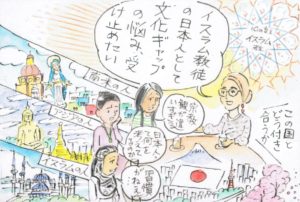 私は、イスラム教に改宗したことで、日本人と外国人の宗教観のズレが良く理解できるようになりました。海外から来たお母さんが、宗教で何を心の支えにしているのか分かる。一方、周りにいる日本人が、彼女をどう見ているかということも分かる。両方見えるので、お互いの誤解をとくことができる。それが私の強みであり、役割なのかなと。