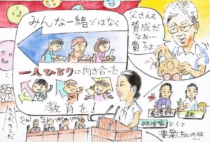 医療・介護の現場では、高齢者の方のご病気や障害の現れ方が、みなさんそれぞれ違う。そこを見極めて、「この人に何が必要だろうか?」と考えるのはごく当たり前のことです。だけど子どもたちの通う学校は、同じ時間、同じ場所に子どもたちを集めて、一斉に同じ授業をする、同じ宿題が出る。なぜそれが見直されないのか、とても不思議なのです。